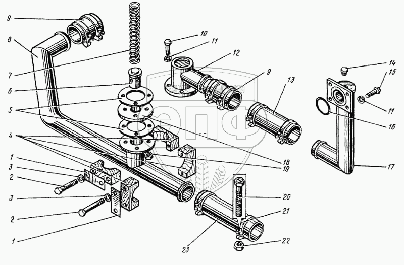Каталог запасных частей к технике: ВЭКС ЭО-5122. Трубопроводы сливные