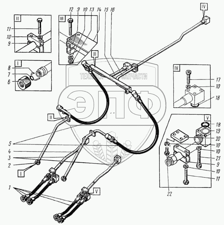 Каталог запасных частей к технике: ВЭКС ЭО-5124. Трубопроводы рабочего оборудования