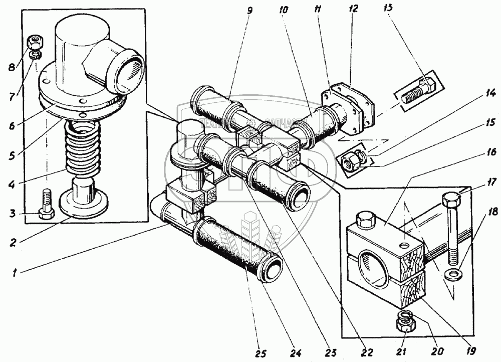 Каталог запасных частей к технике: ВЭКС ЭО-5221. Трубопроводы сливные