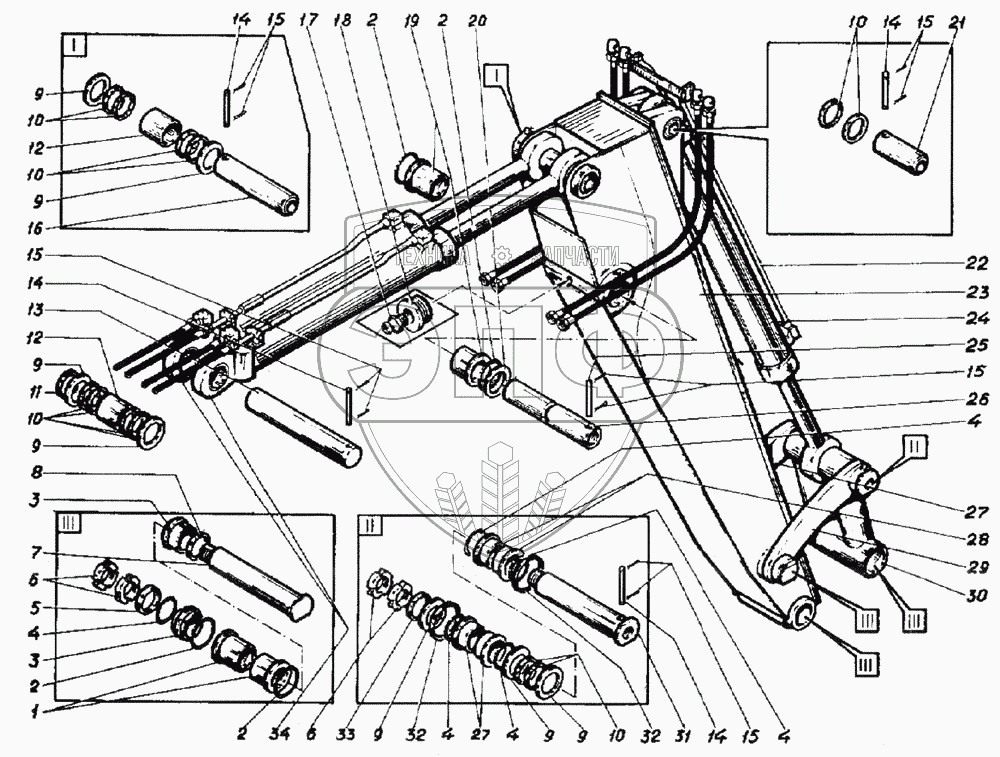 Каталог запасных частей к технике: ВЭКС ЭО-5221. Установка рукояти обратной лопаты