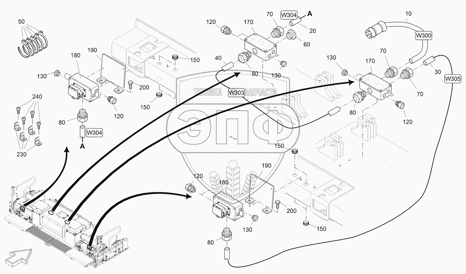 Каталог запасных частей к технике: VOGELE AB 340. DISTRIBUTOR: SCREED HEATING