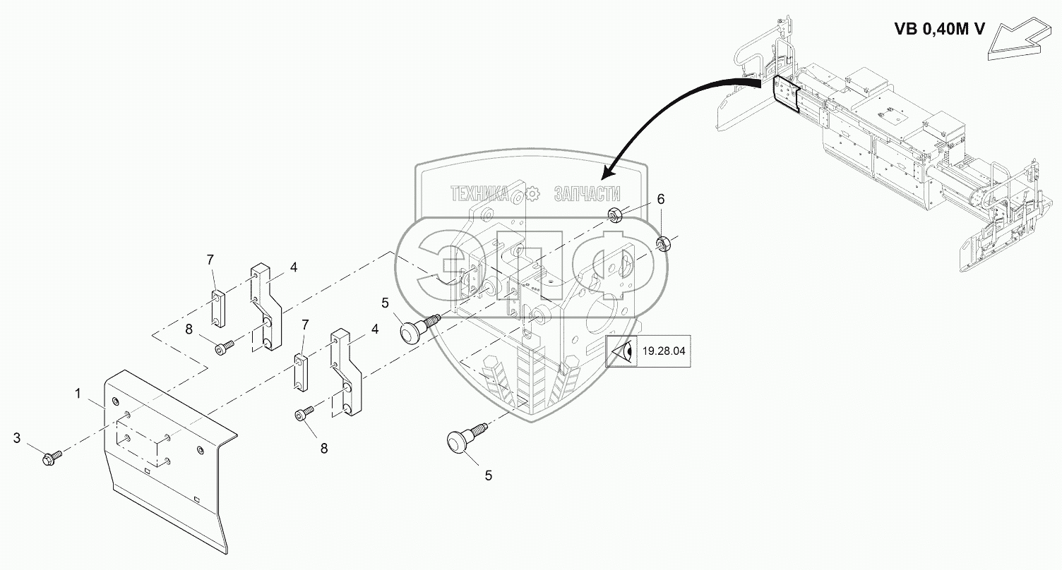 Каталог запасных частей к технике: VOGELE AB 340. FRONT WALL RIGHT