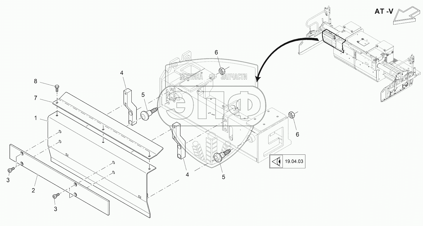 Каталог запасных частей к технике: VOGELE AB 340. TAMPER SHIELD, EXT. UNIT RIGHT