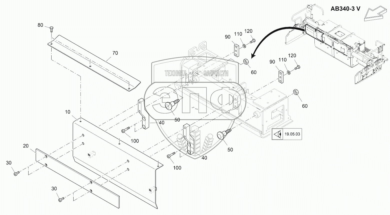 Каталог запасных частей к технике: VOGELE AB 340. TAMPER SHIELD, EXT. UNIT RIGHT