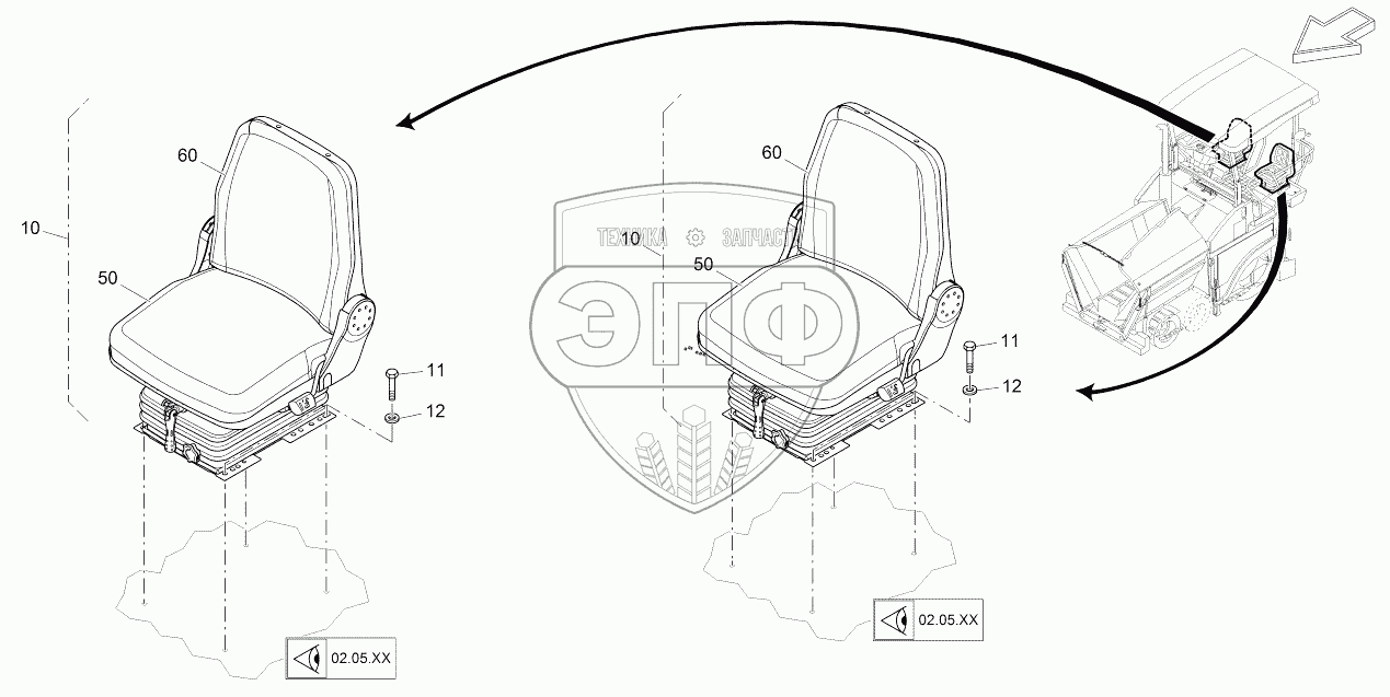 Каталог запасных частей к технике: VOGELE SUPER 1100-3. DRIVER'S SEAT