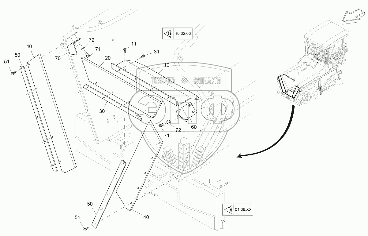 Каталог запасных частей к технике: VOGELE SUPER 1100-3. HOPPER FRONT (MECHANICAL)