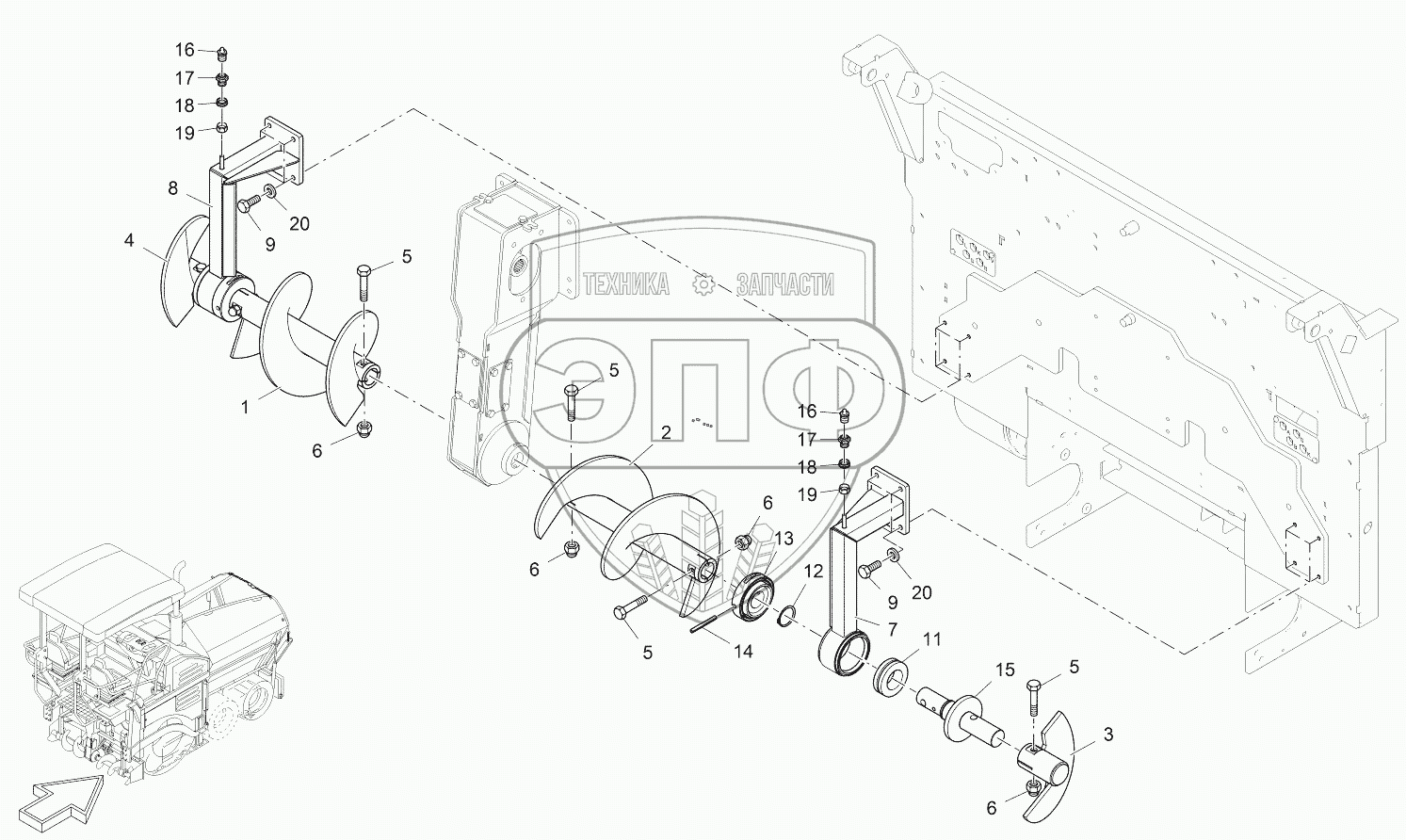 Каталог запасных частей к технике: VOGELE SUPER 1103-2. AUGER SHAFT WITH BEARING