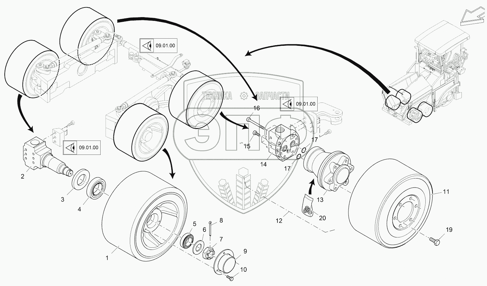 Каталог запасных частей к технике: VOGELE SUPER 1103-2. FRONT WHEELS, POWERED