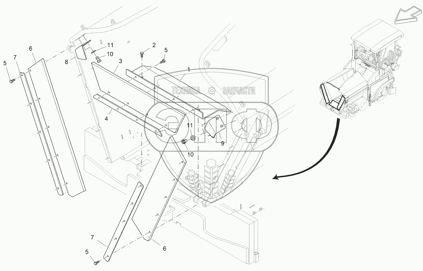 Каталог запасных частей к технике: VOGELE SUPER 1103-2. HOPPER FRONT (MECHANICAL)
