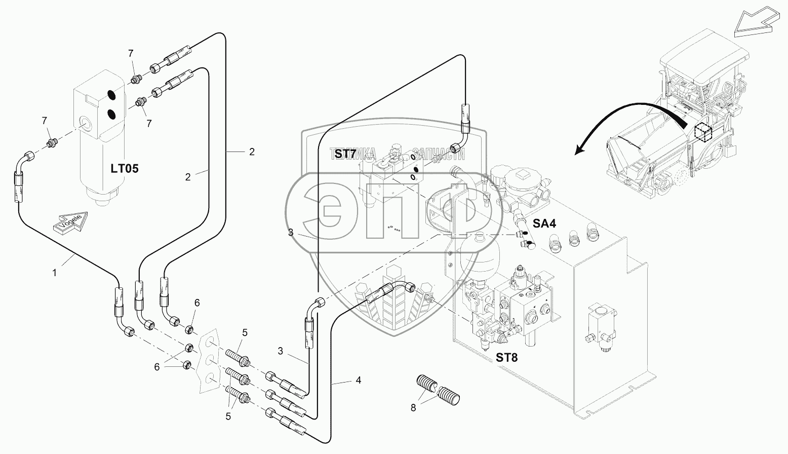 Каталог запасных частей к технике: VOGELE SUPER 1103-2. ROAD TRAVEL HYDRAULIC