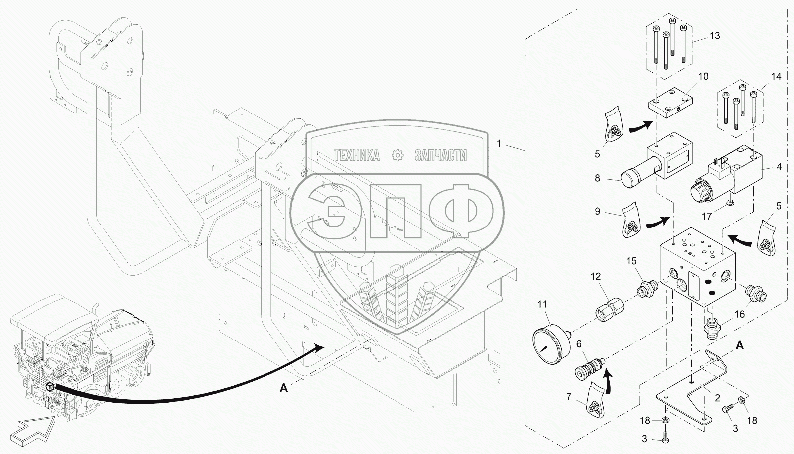 Каталог запасных частей к технике: VOGELE SUPER 1103-2. VALVE BLOCK SCREED ASSIST