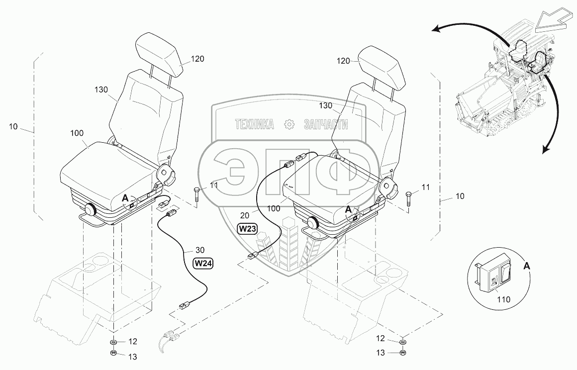 Каталог запасных частей к технике: VOGELE SUPER 1300-3. DRIVER'S SEAT+HEATING