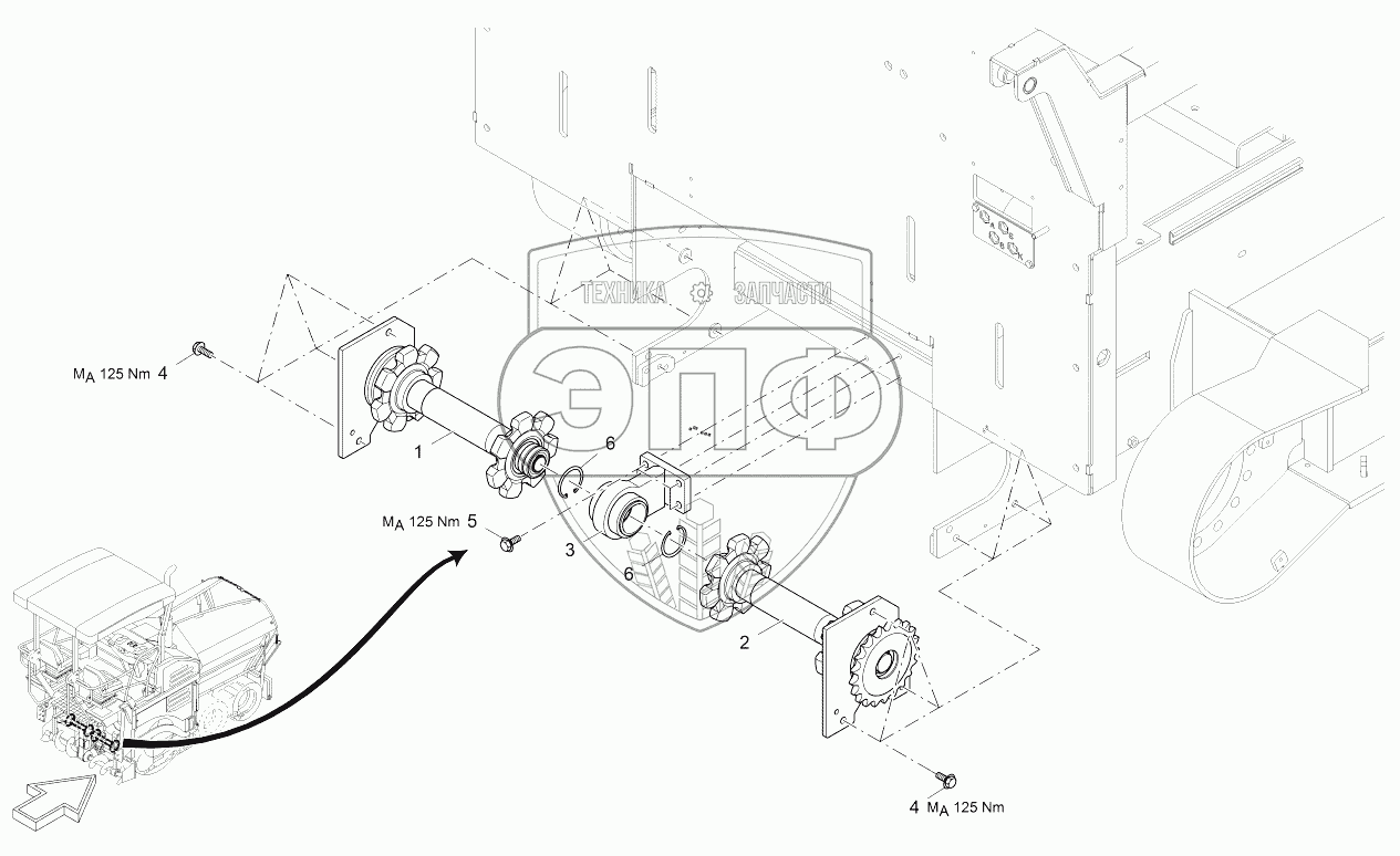 Каталог запасных частей к технике: VOGELE SUPER 1300-3. DRIVING SHAFT: CONVEYOR