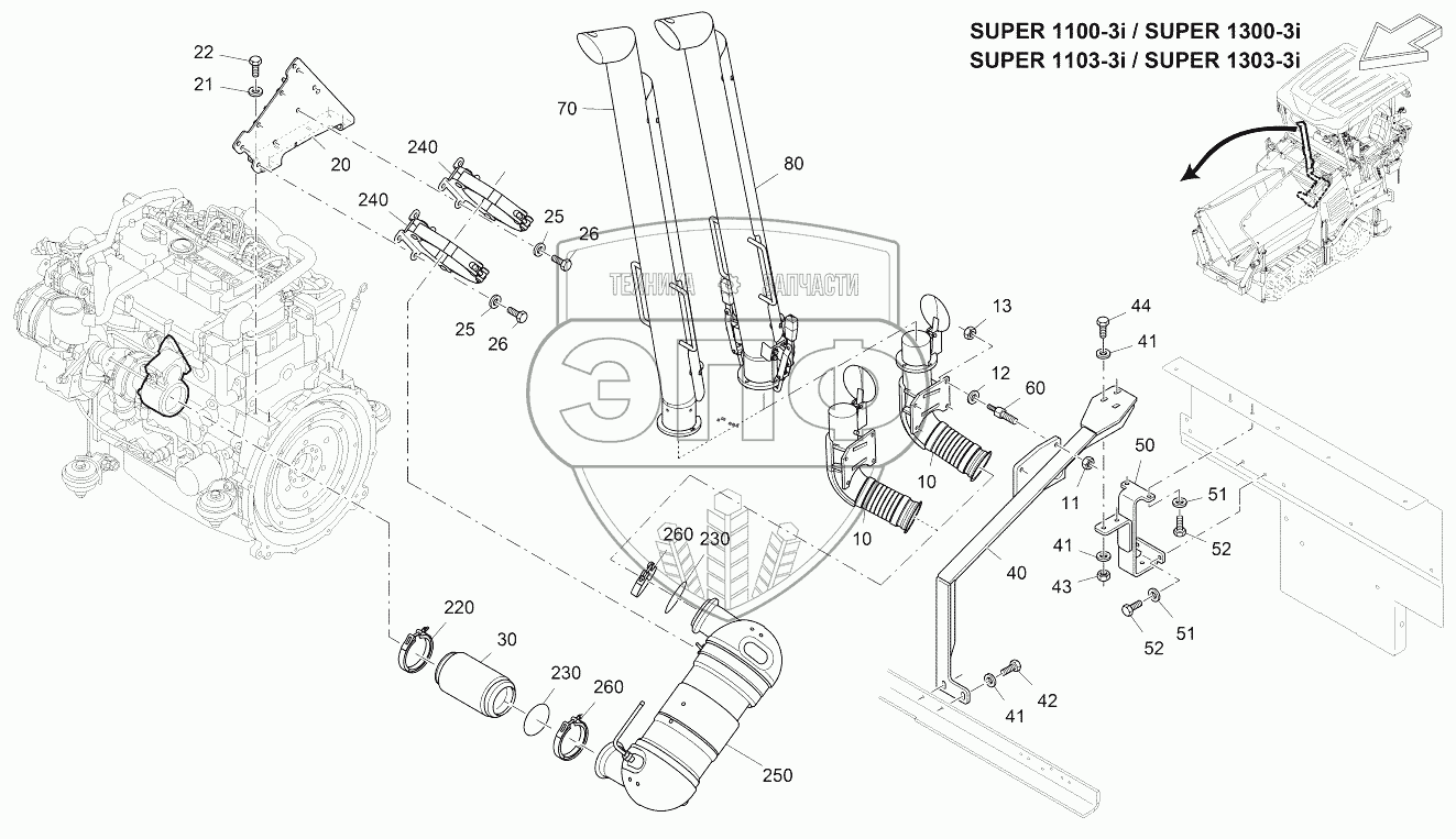 Каталог запасных частей к технике: VOGELE SUPER 1300-3. EXHAUST SYSTEM