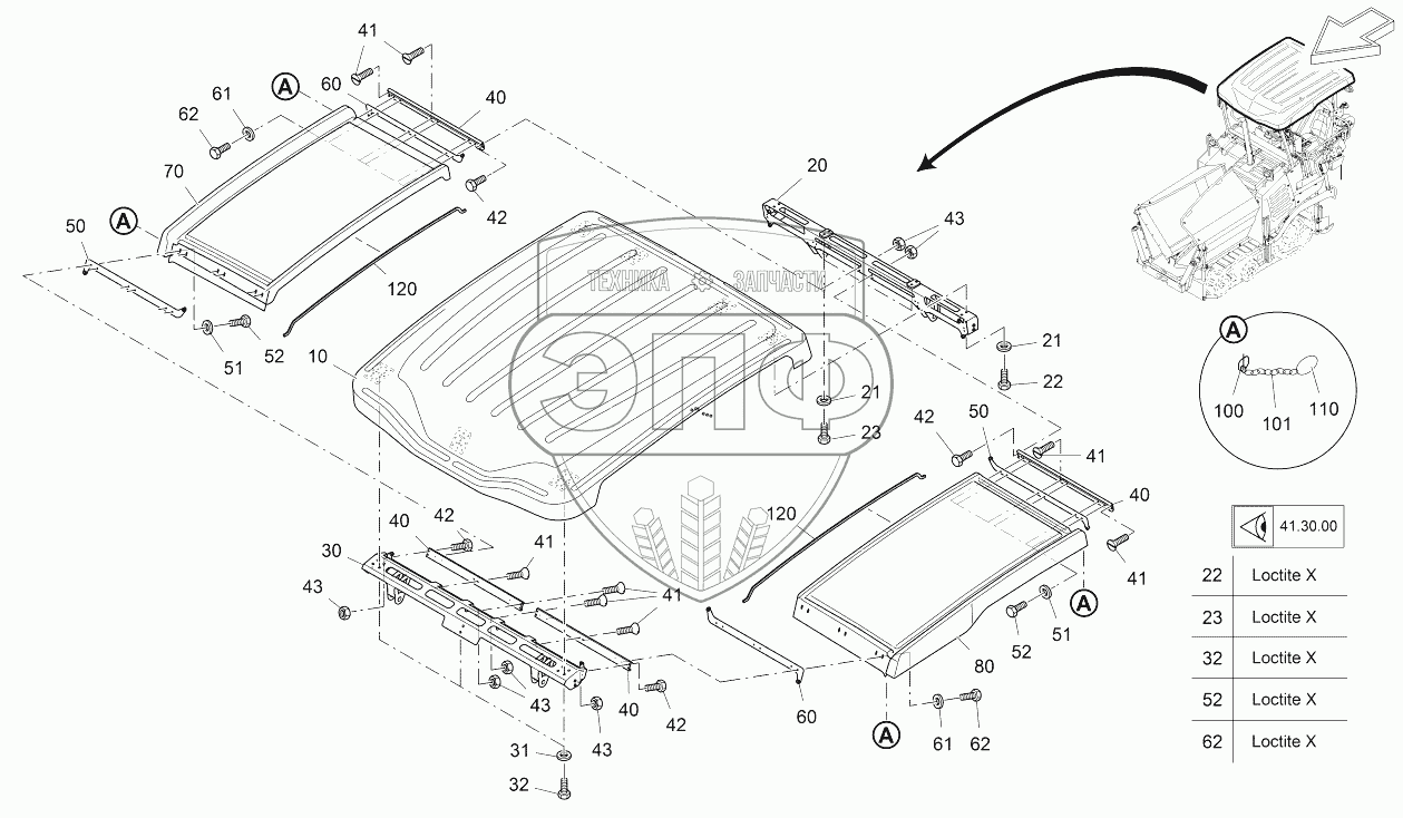 Каталог запасных частей к технике: VOGELE SUPER 1300-3. ROOF WITH AWNING