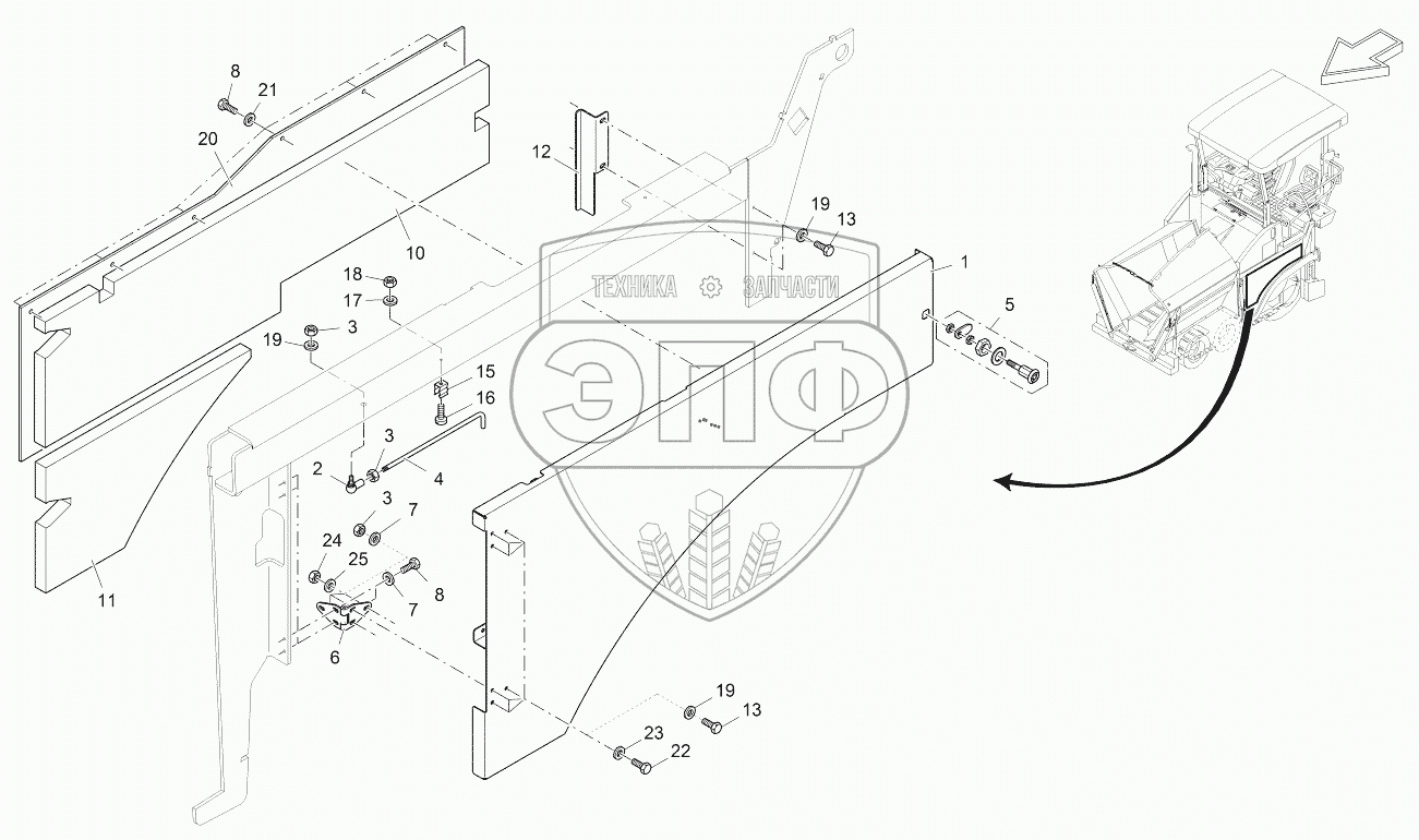 Каталог запасных частей к технике: VOGELE SUPER 1303-2. COVERING, LEFT SIDE