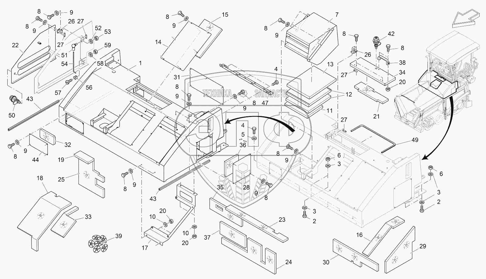 Каталог запасных частей к технике: VOGELE SUPER 1303-2. ENGINE COVER