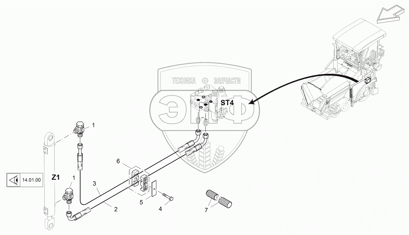 Каталог запасных частей к технике: VOGELE SUPER 1303-2. HYDRAULIC RAM, LEFT SIDE