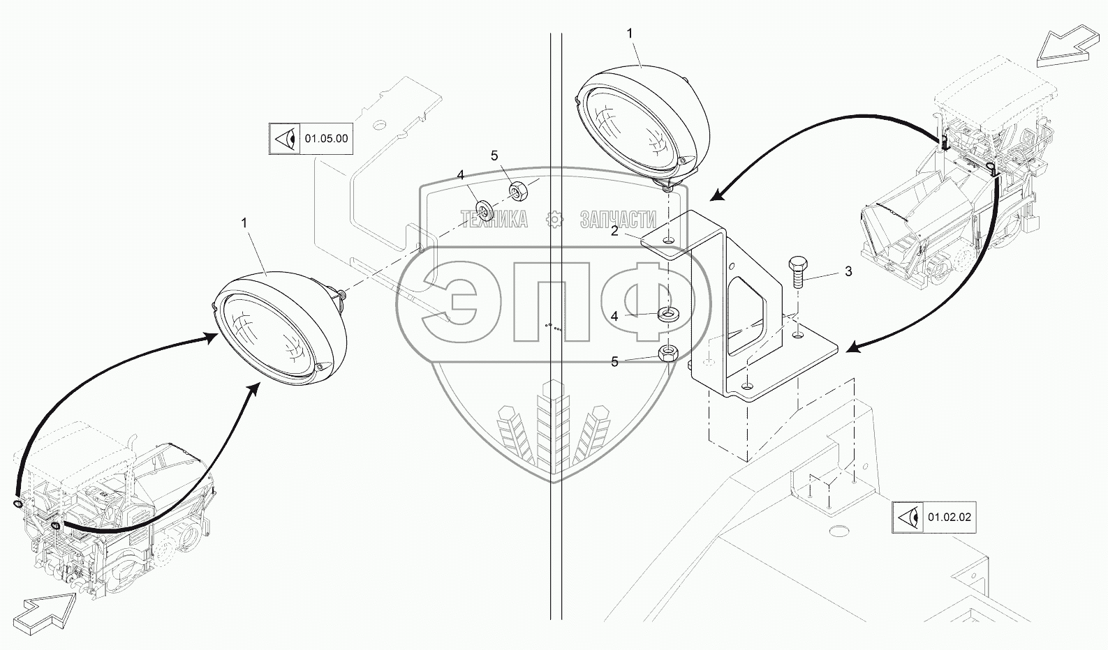 Каталог запасных частей к технике: VOGELE SUPER 1303-2. LIGHTING, HALOGEN LAMPS
