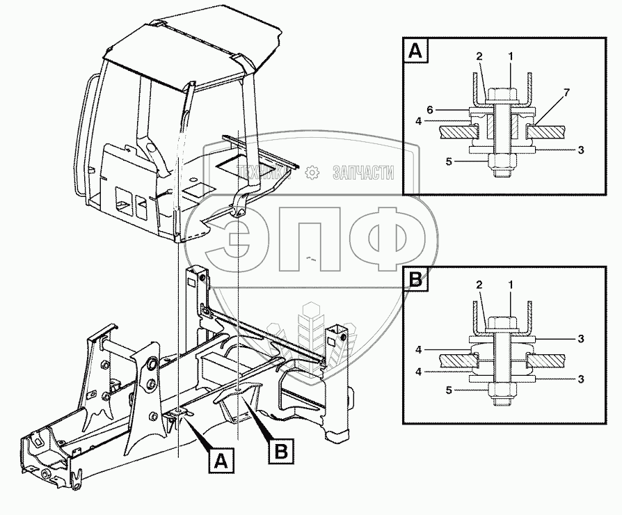 Каталог запасных частей к технике: Volvo BL60. Cab mounting block