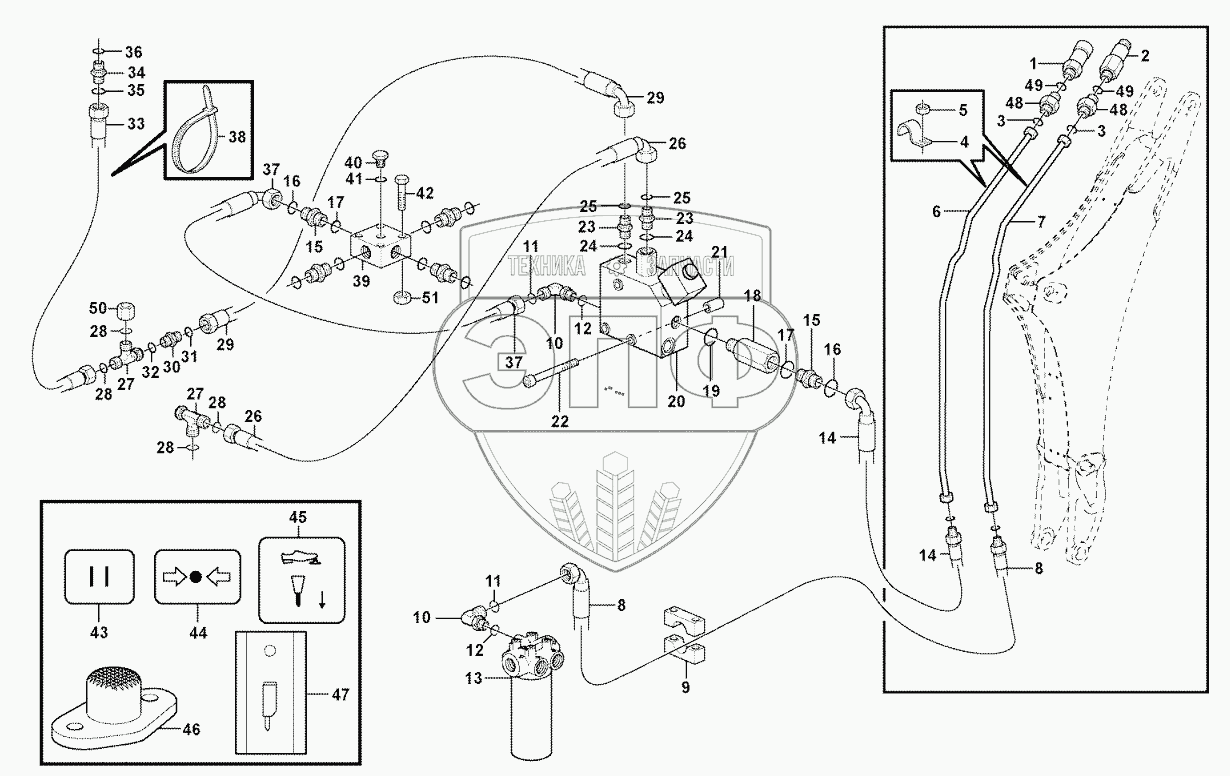 Каталог запасных частей к технике: Volvo BL60. Hydraulic system, hammer