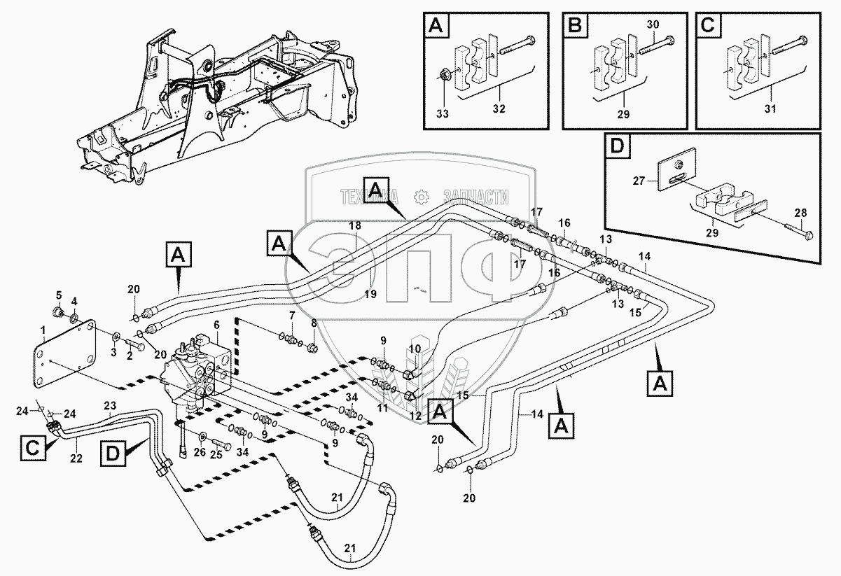 Каталог запасных частей к технике: Volvo BL60. Hydraulics loader (lift & tilt)