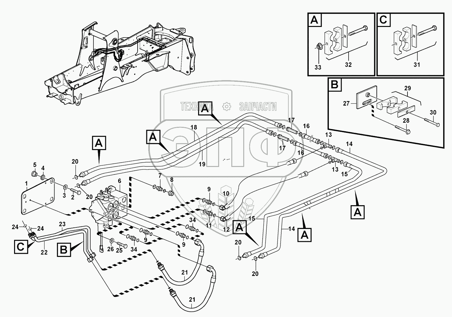 Каталог запасных частей к технике: Volvo BL61. Hydraulics loader (lift & tilt)