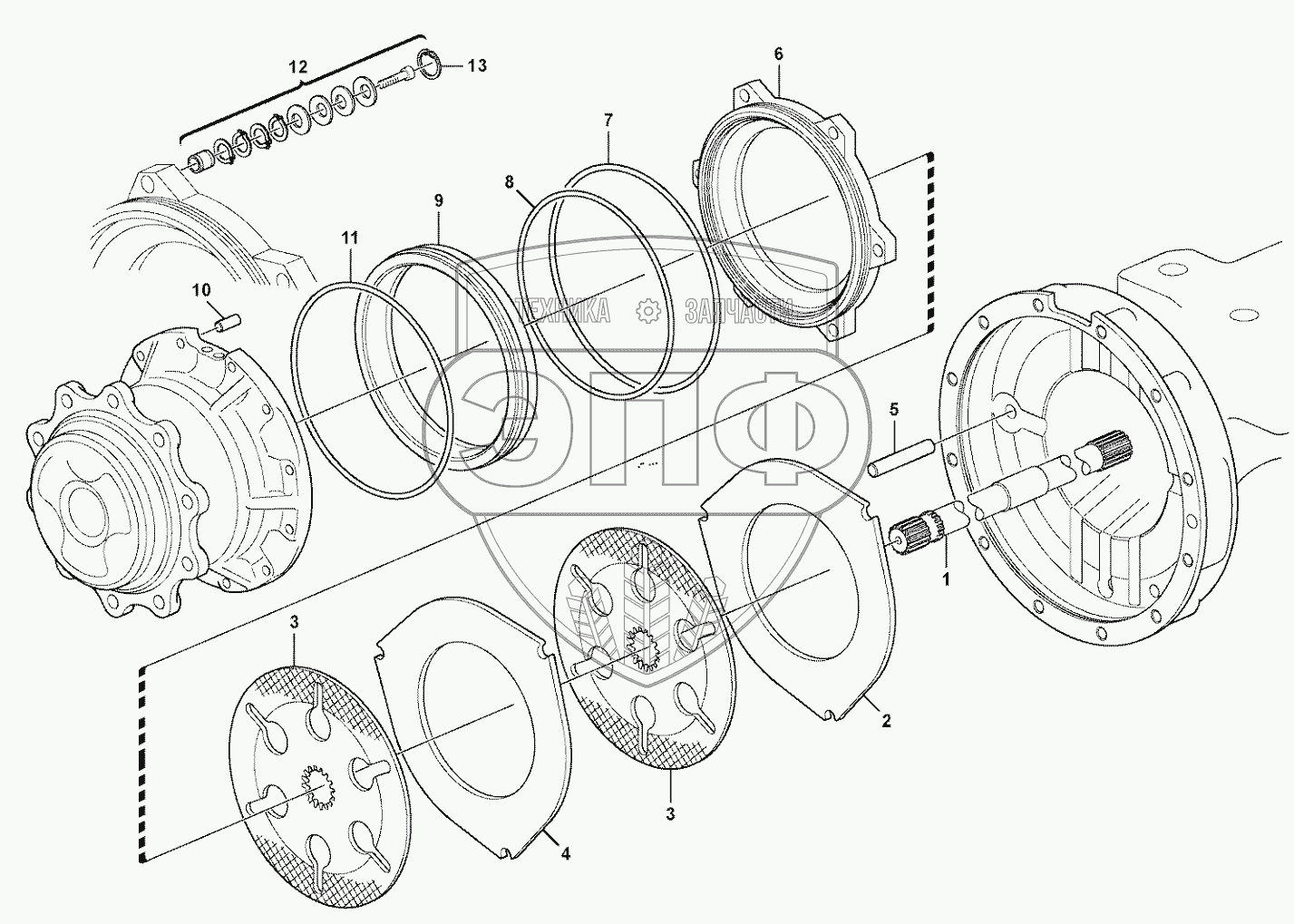 Каталог запасных частей к технике: Volvo BL61 Plus. Multi-disc brake, rear 11887363