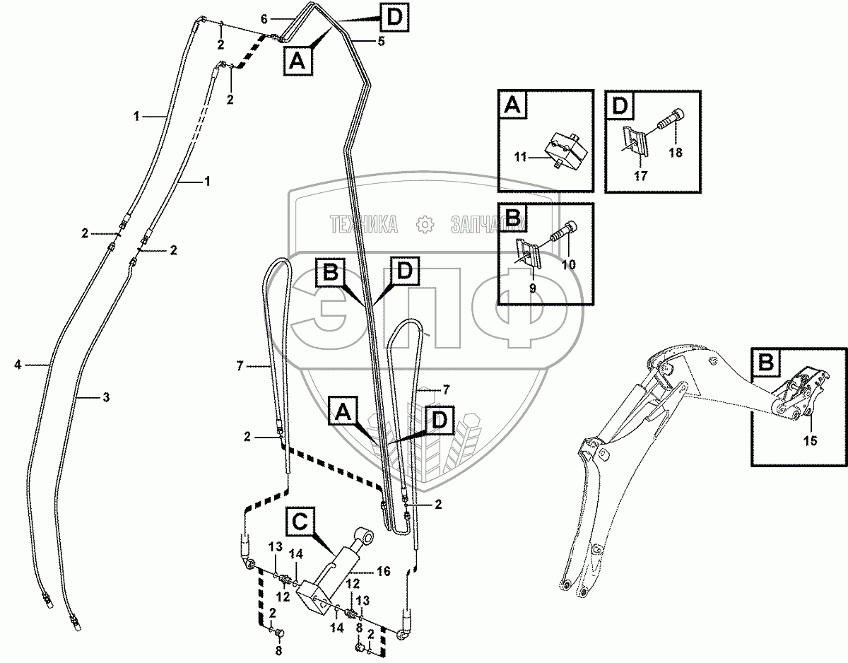 Каталог запасных частей к технике: Volvo BL71. 11891351, 11891362 Hydraulic attachment bracket digger