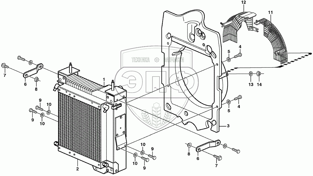 Каталог запасных частей к технике: Volvo BL71. Radiator with fitting parts