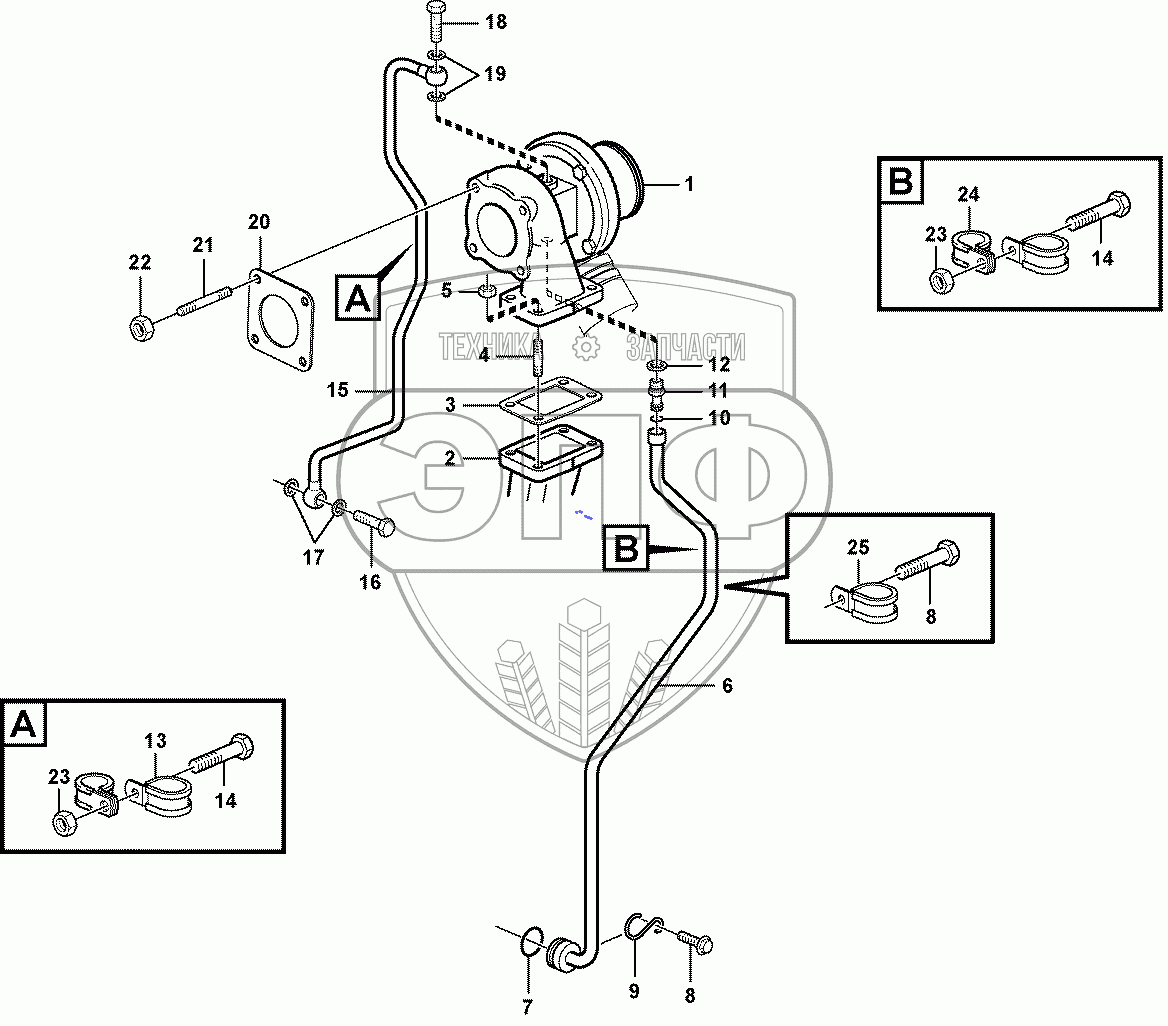 Каталог запасных частей к технике: Volvo BL71 Plus. Turbocharger with fitting parts