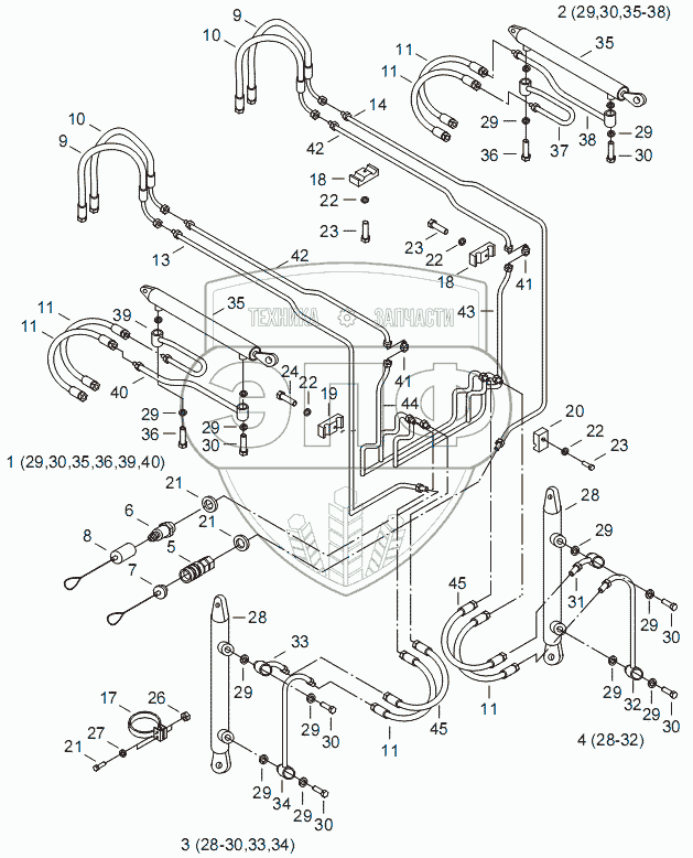 Каталог запасных частей к технике: WAY LOCUST L-1203. Гидравлическая система
