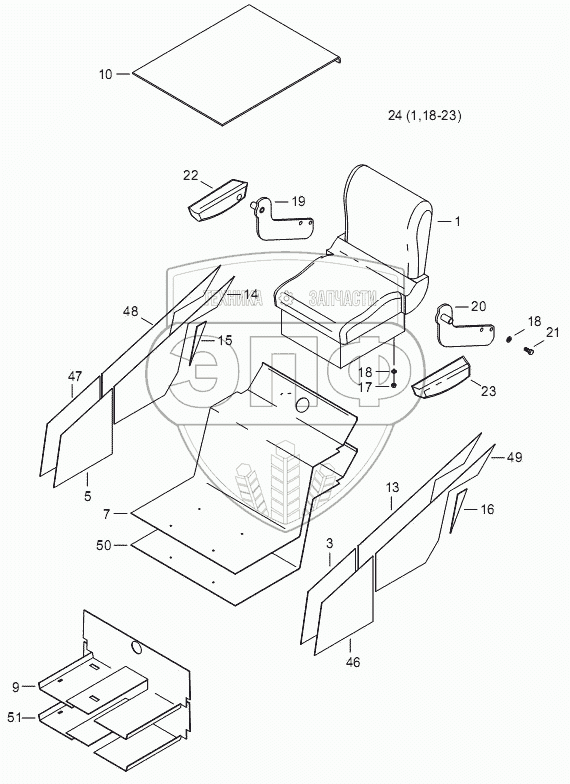 Каталог запасных частей к технике: WAY LOCUST L-903. Кабина