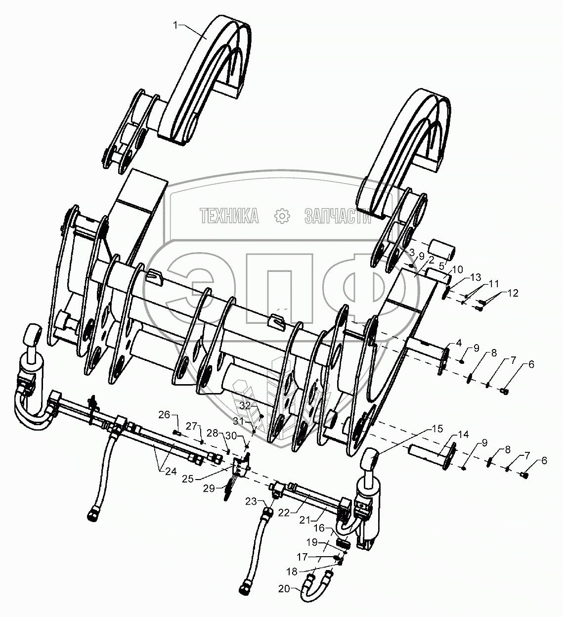 Каталог запасных частей к технике: XCMG LW300FN. Захват в сборе(прижималка вразбежку) 251901114