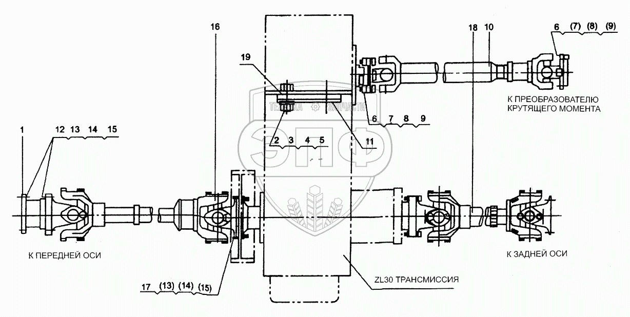 Каталог запасных частей к технике: XCMG LW321F. Z3.4 Узел приводного вала
