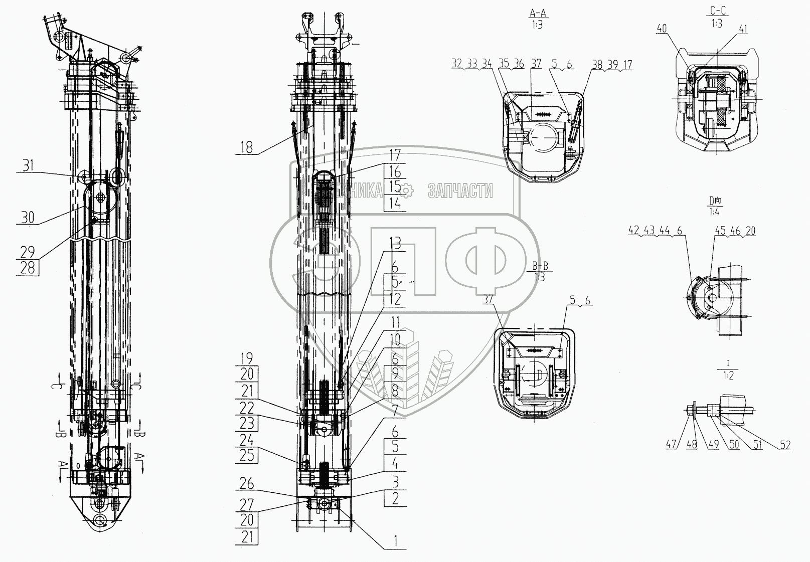 Каталог запасных частей к технике: XCMG QY25K. QY25K.02III.5 Telescoping Units