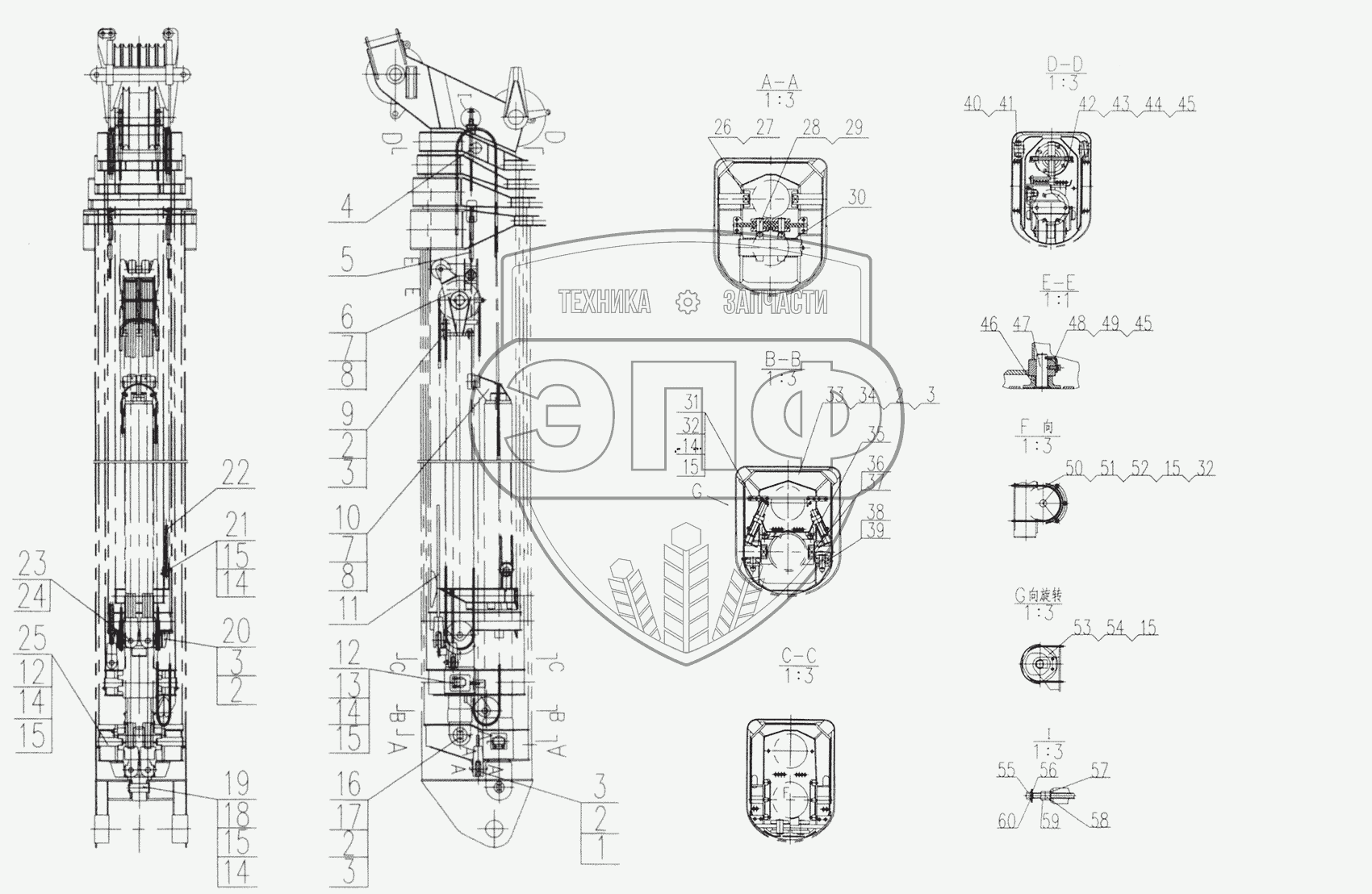 Каталог запасных частей к технике: XCMG QY50K (вариант). YK50K.02 II.6 Telescoping Units