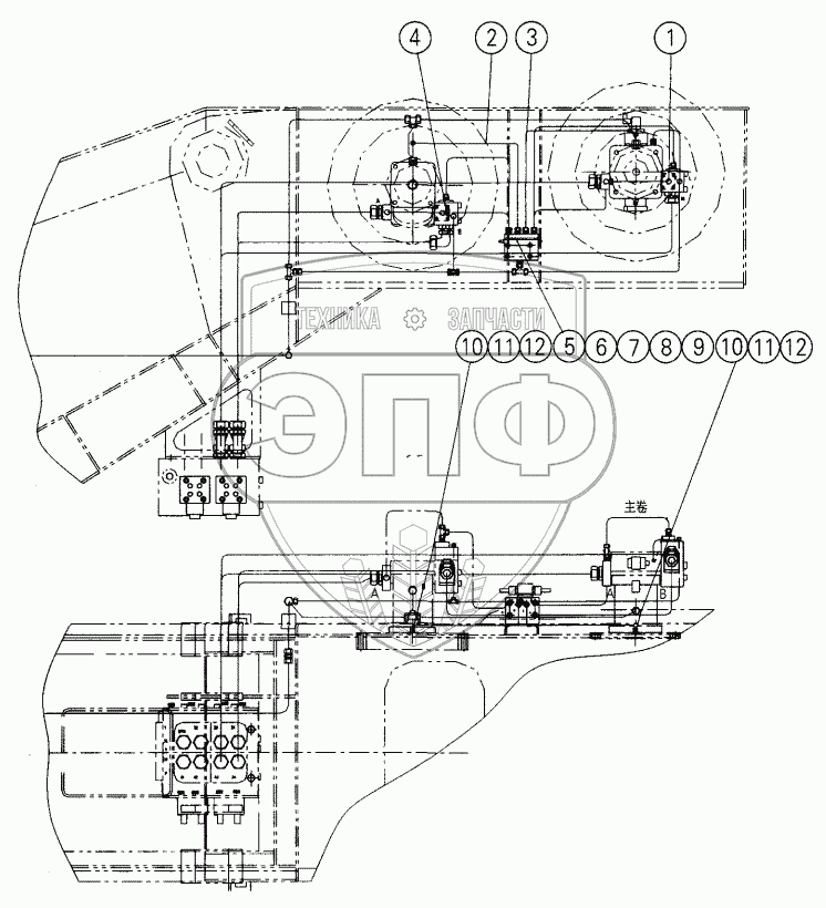 Каталог запасных частей к технике: XCMG QY70K. 08613078 Pipes of lifting mech