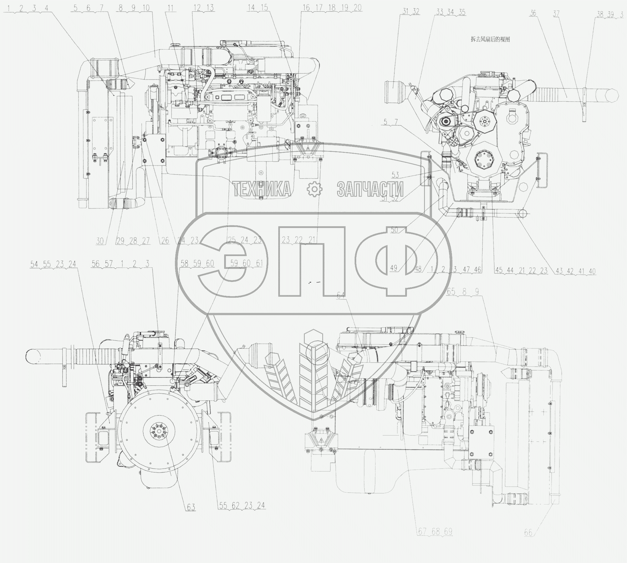 Каталог запасных частей к технике: XCMG QY70K (вариант). XZ50K.45 II Engine Install