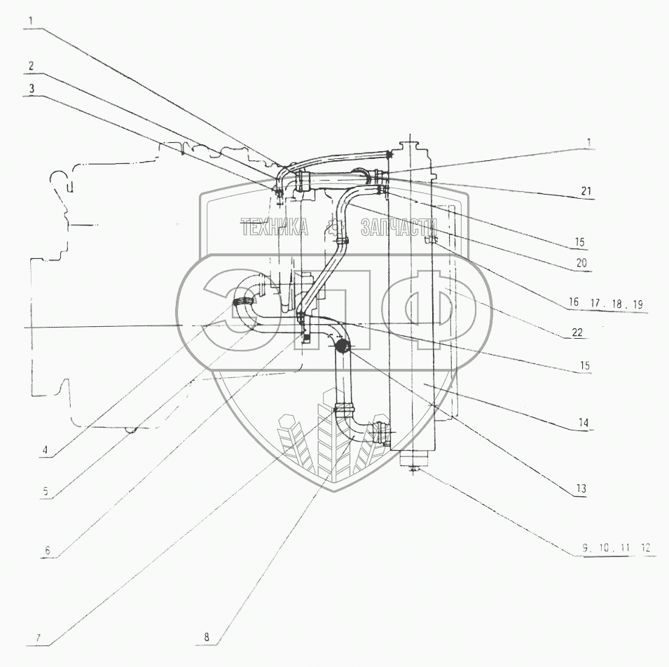 Каталог запасных частей к технике: XCMG XSM218, XSM220. Radiator and Water Pipe