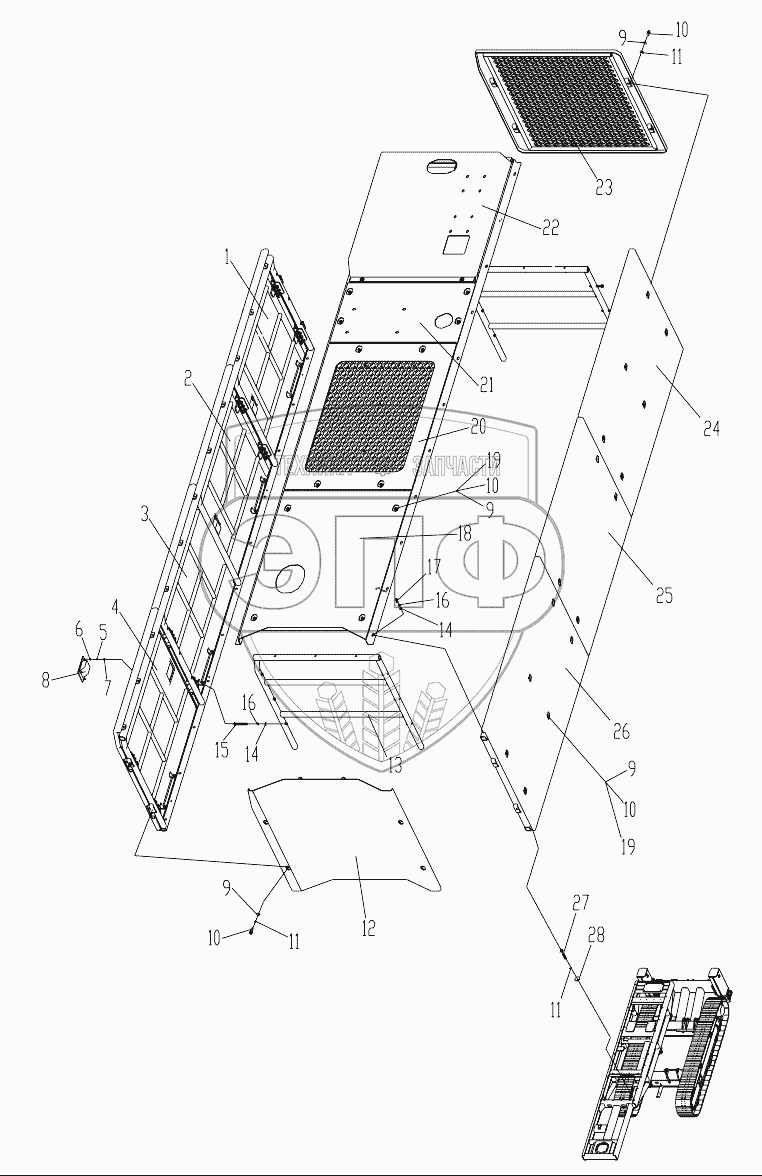 Каталог запасных частей к технике: XCMG XZ680A. 425802228 Engine Hood & Covers