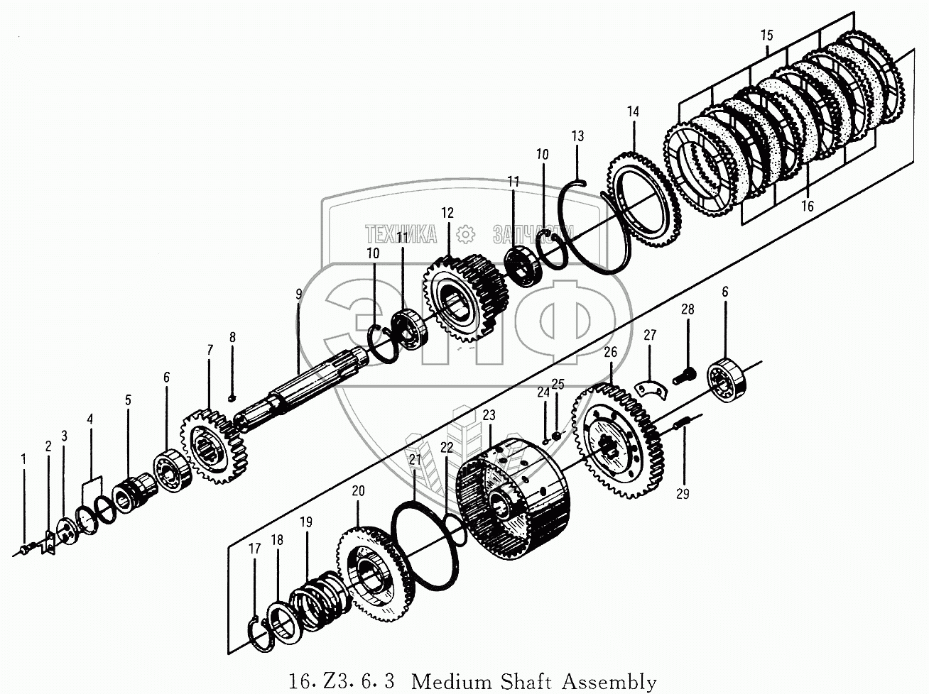 Каталог запасных частей к технике: XCMG ZL30G. Промежуточный вал