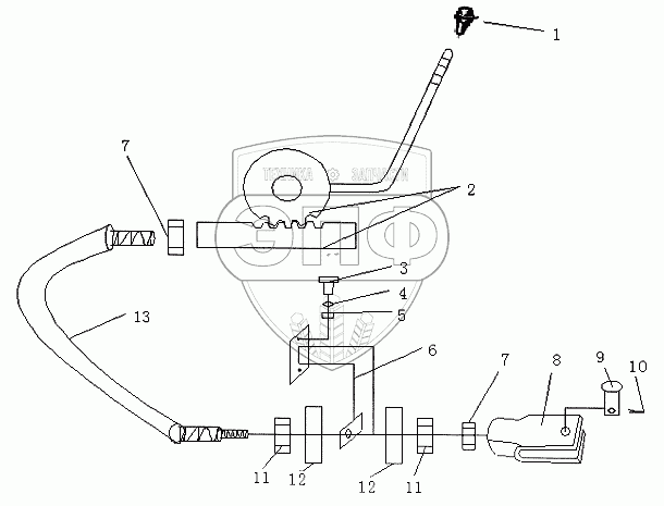 Каталог запасных частей к технике: Xiamen XZ636. Установка рычага управления