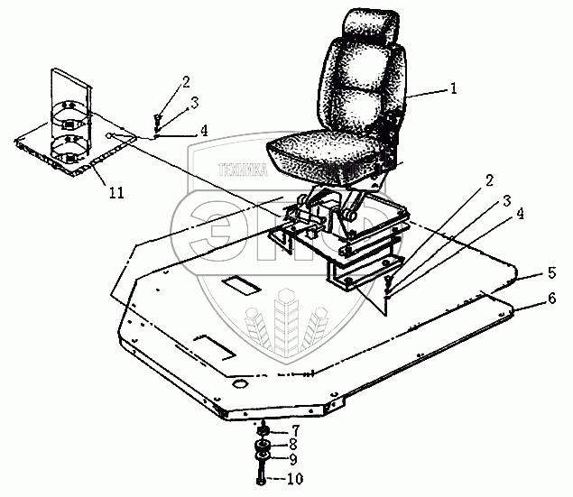 Каталог запасных частей к технике: Xiamen XZ636. Установка сиденья и модуля пола