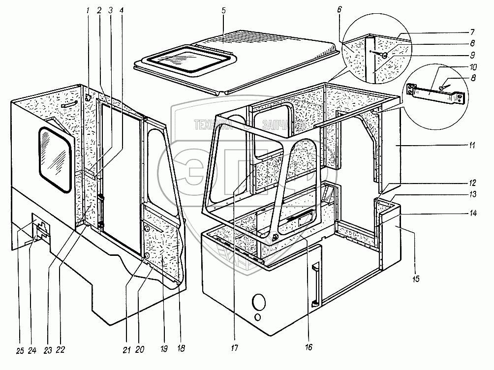 Каталог запасных частей к технике: ЮрМаш КС-4361А. Кабина 4361А.44