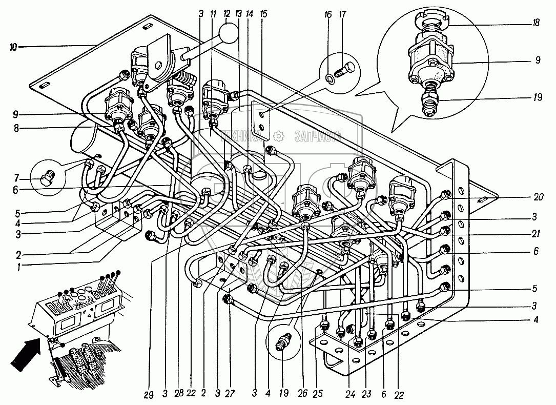 Каталог запасных частей к технике: ЮрМаш КС-4361А. Пост управления 4361А.50А