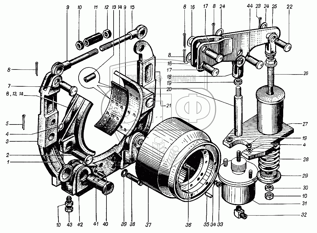 Каталог запасных частей к технике: ЮрМаш КС-4361А. Тормоз стояночный 4361А.05