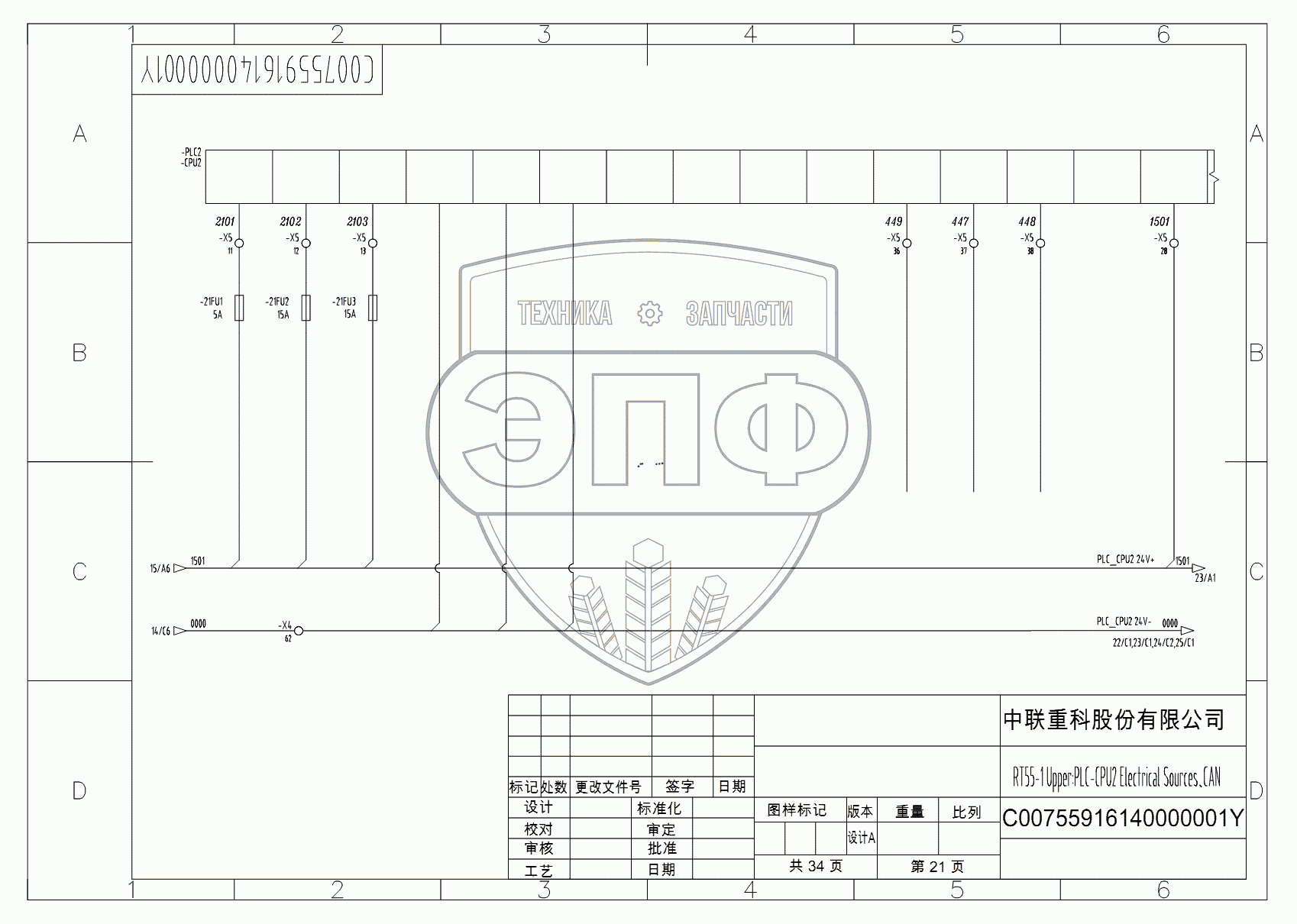 Каталог запасных частей к технике: Zoomlion RT-55. SCHEMATIC DIAGRAM - ELECTRICAL SYSTEM (HIRSCHMANN) D00755916140000001Y