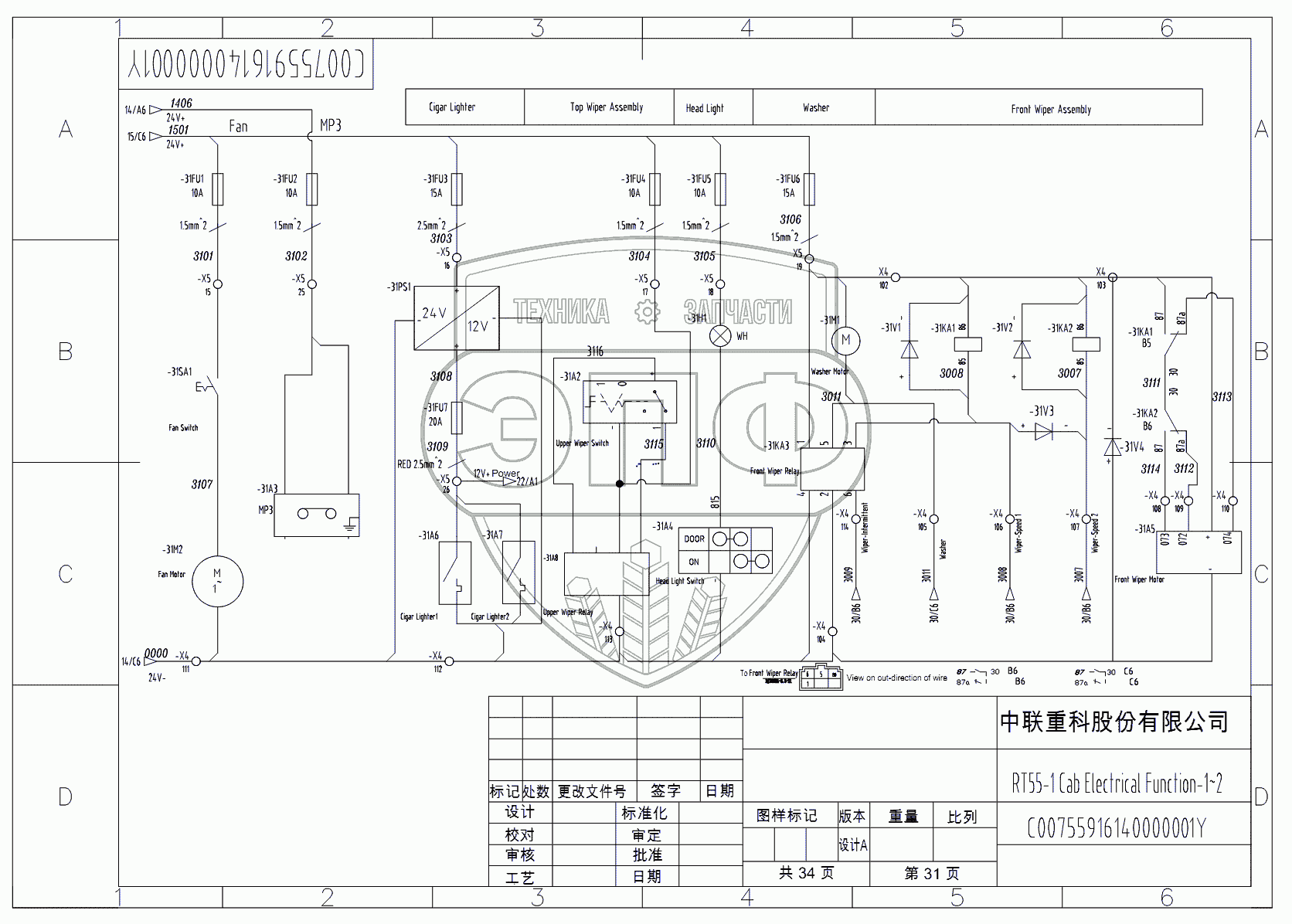 Каталог запасных частей к технике: Zoomlion RT-55. SCHEMATIC DIAGRAM - ELECTRICAL SYSTEM (HIRSCHMANN) D00755916140000001Y
