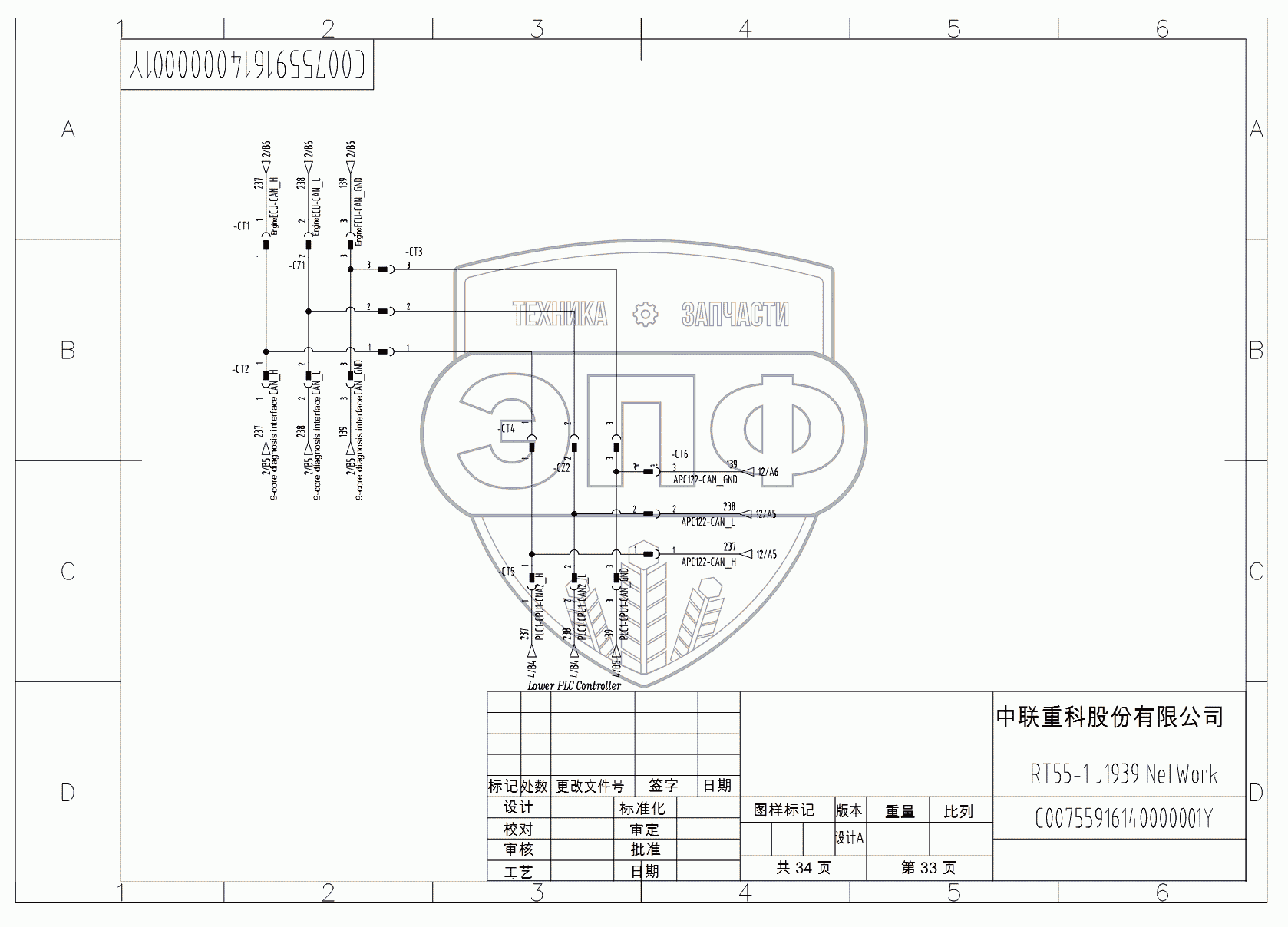 Каталог запасных частей к технике: Zoomlion RT-55. SCHEMATIC DIAGRAM - ELECTRICAL SYSTEM (HIRSCHMANN) D00755916140000001Y